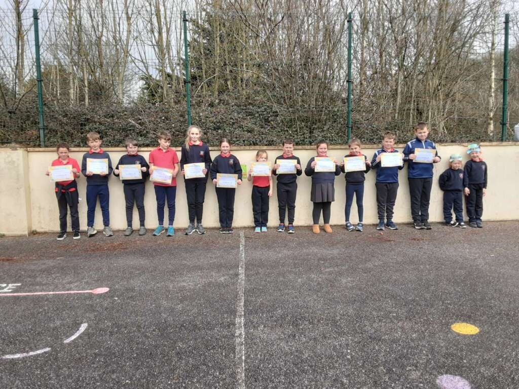At assembly today we celebrated the students from each class who have made the biggest effort to keep their classroom and table tidy and the students who had full attendance in February. We also celebrated our large group of Scór participants. Some of whom will be in the final in 2 weeks time.