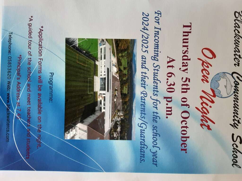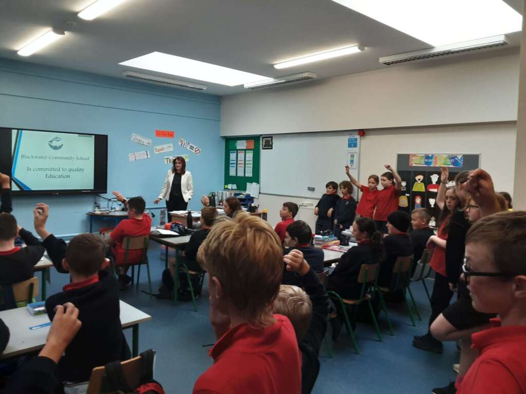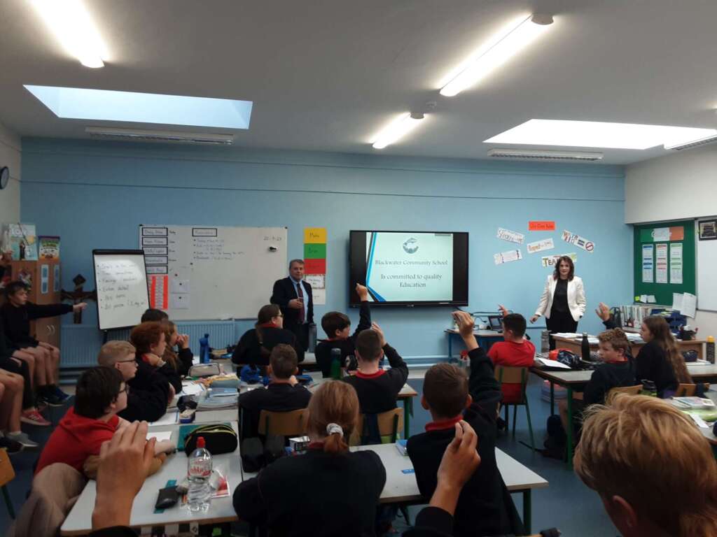 We welcomed Mr. Ring and Ms. O’ Brien from Blackwater Community school today. They came to talk to 5th and 6th class about their school in Lismore. We are looking forward to their Open Night on October 5th at 6.30pm.