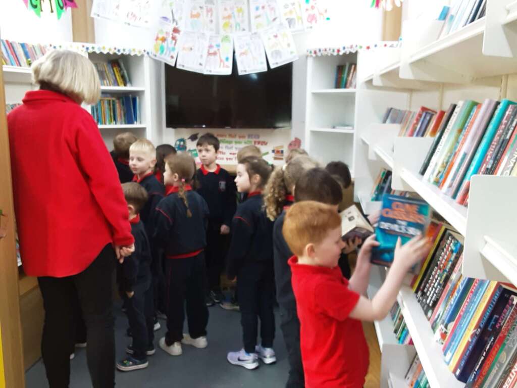 We are delighted the mobile library finally visited us today. The younger kids heard a story and everyone was able to borrow a book. They will be back in 4 weeks to change the books so please keep them safe!