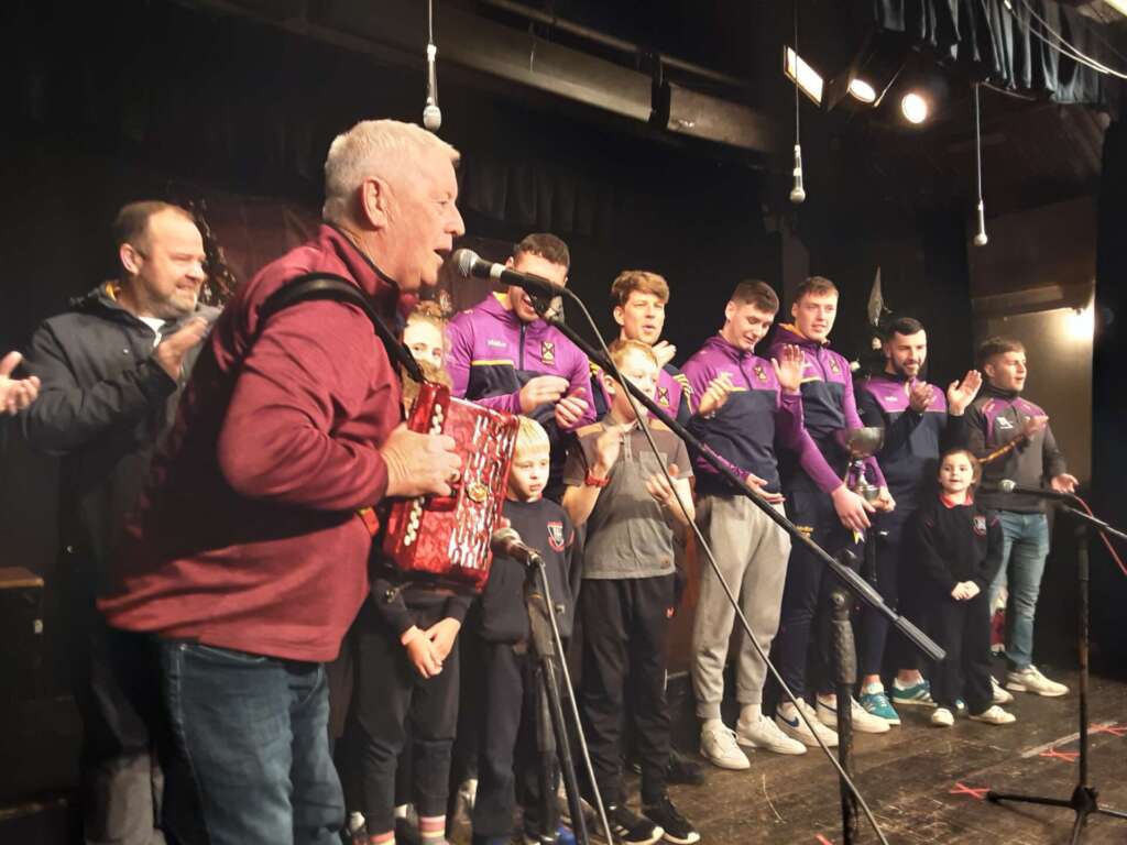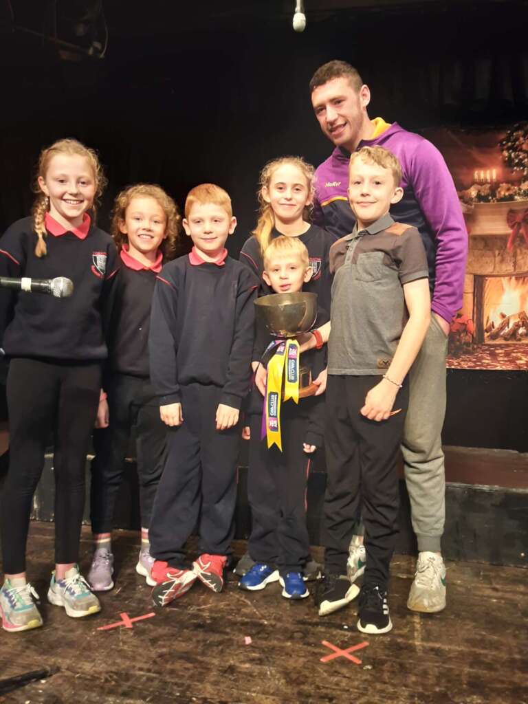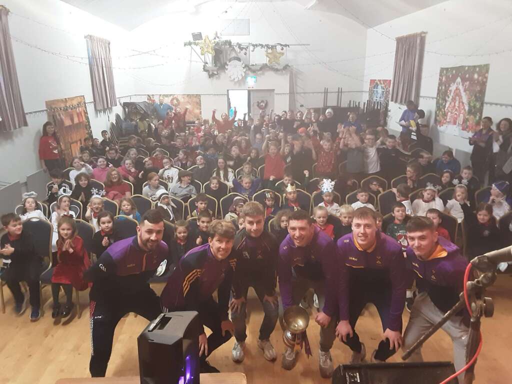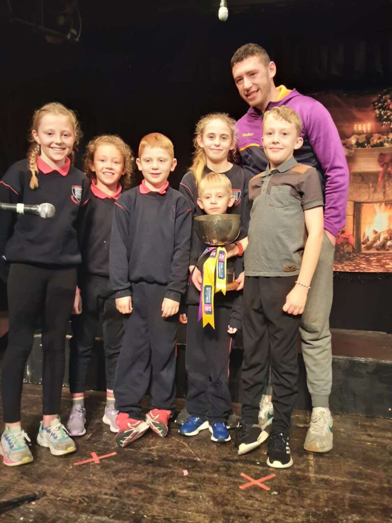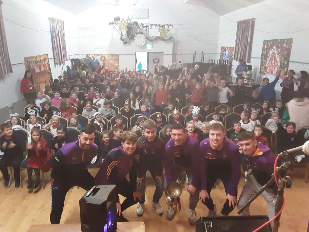 A historic day in the Conna today- we had the Munster Cup Winners visit us during our dress rehearsal. The excitement was incredible. We had songs and music as well as sport. Best of luck to the team on Saturday. We are hoping for another visit!!