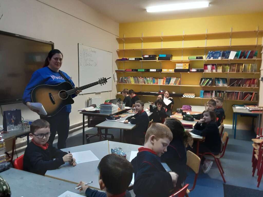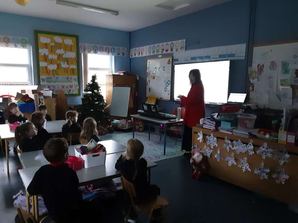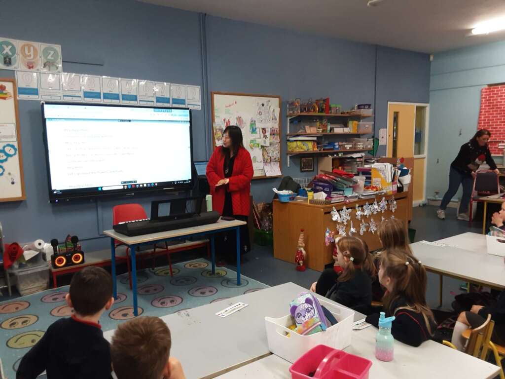 We are incredibly lucky to have not 1 but 2 very talented musical parents in school with us today. Jina is telling stories and teaching the children her own song as well as playing the keyboard. Yvonne is in to practice for the choir at Christmas mass. All children are welcome to join in.