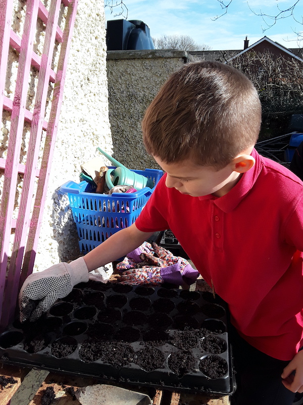 Each class has received at least one vegetable and one flower to plant. Our new greenhouse should be arriving soon.