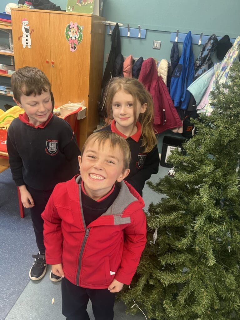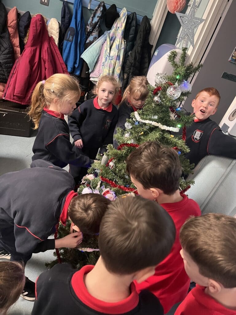 We decorated our classroom today. All the children got to place a bauble on the tree and we used a raffle to decide who would put the star on the tree – a lucky girl indeed!