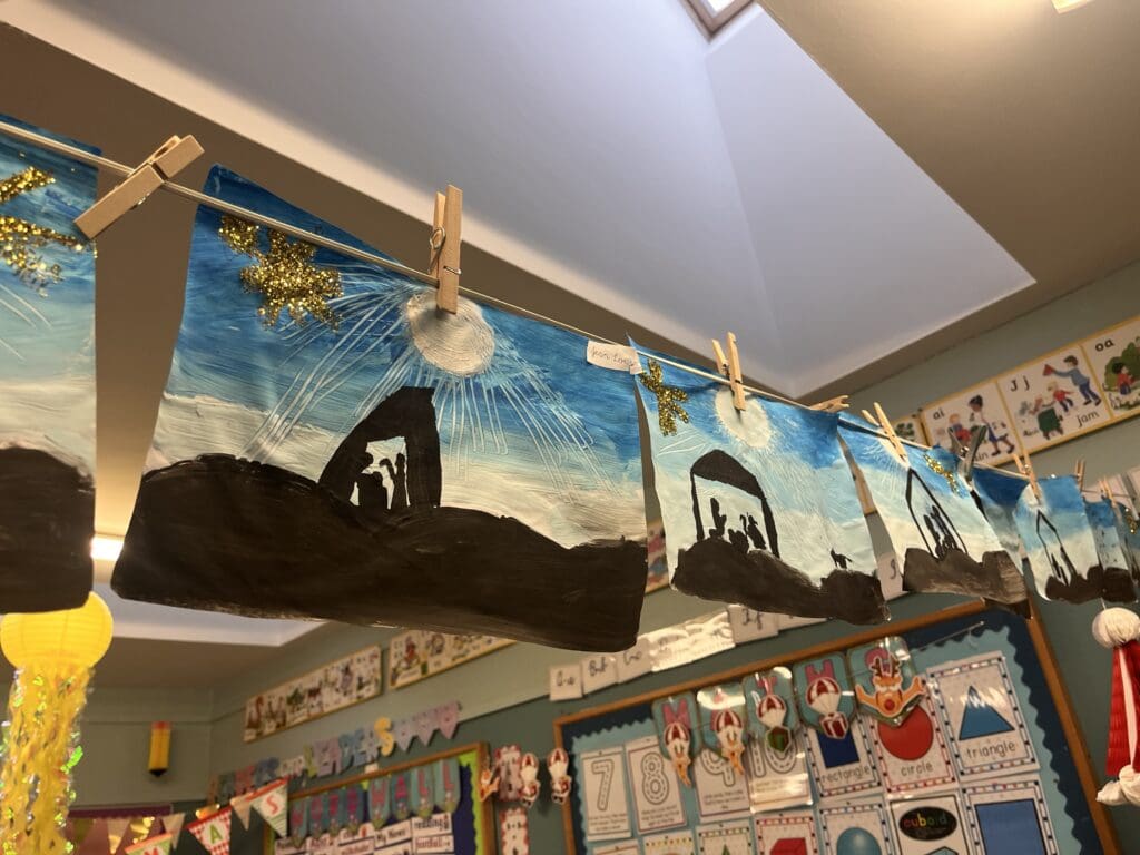 We’re busy getting ready for the carol service next week, here’s our nativity art we made. We’ve been practicing our lines too for the night so everyone can be seen!
