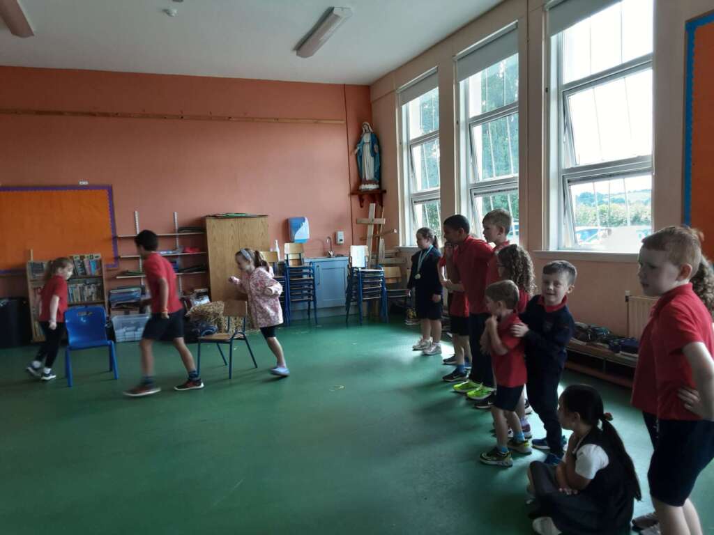 The weather stayed fine for us today. We had a very enjoyable sports day on both Conna pitch and the yard. There were lots of games, messing and laughter. A great way to spend our final Monday of the school year.