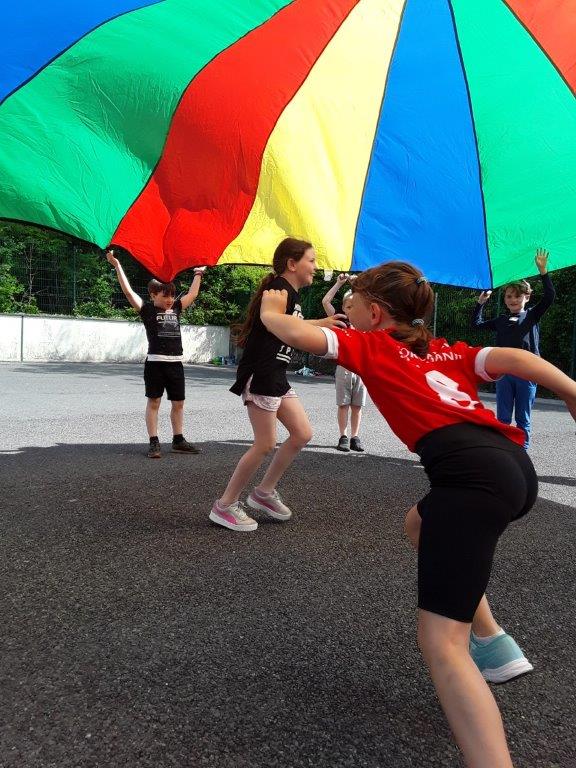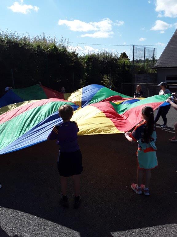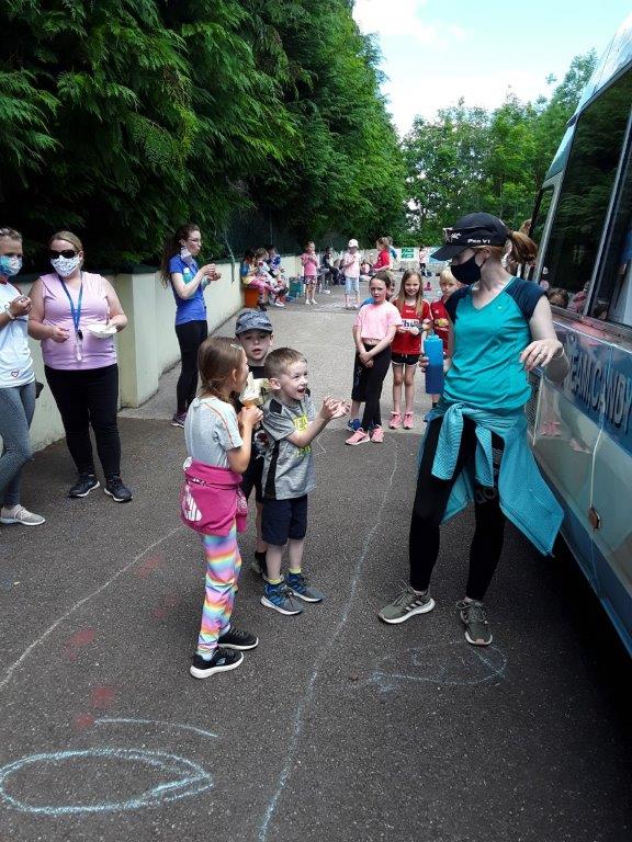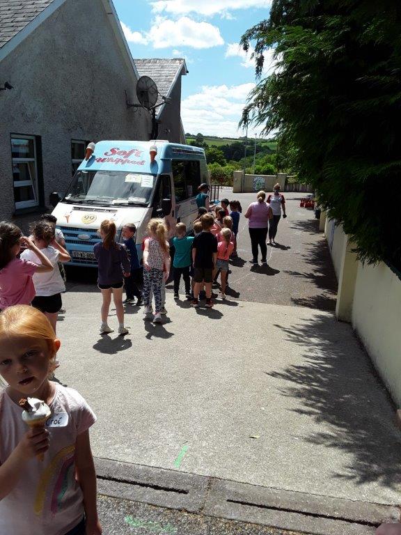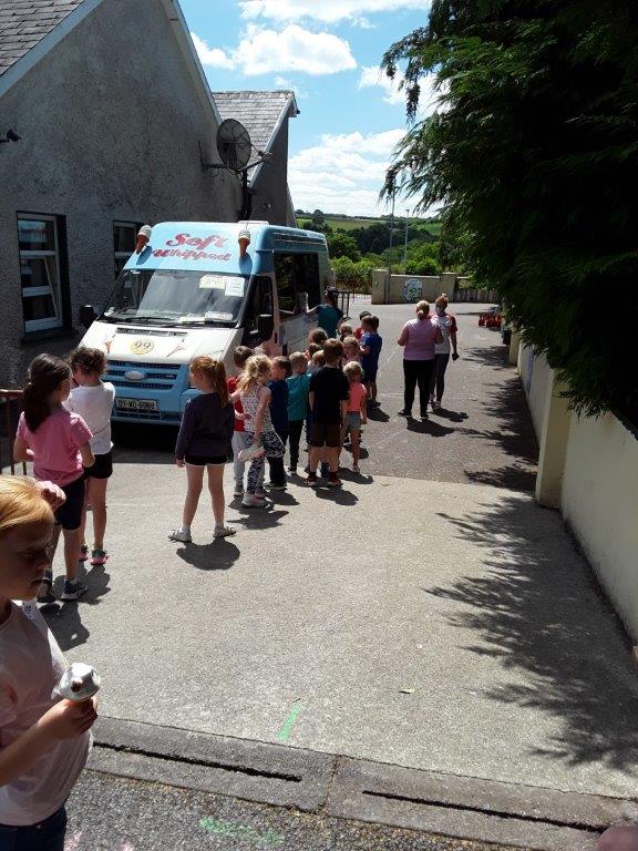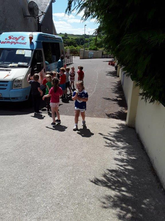 Junior Infants to 2nd class had our sport day in the school today and what an amazing day we had. We had great fun with games, yoga, dance, water and the parachute. The highlight of our day was when the ice-cream van came to visit!