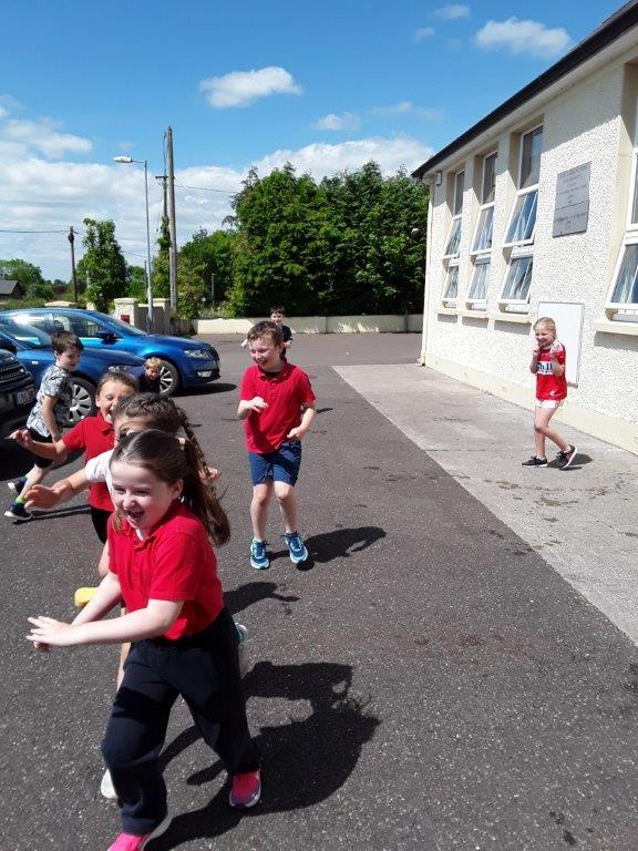 Third to 6th class walked to the pitch for fun and games. We had an amazing time. Our step count is off the charts! Pictures are available under the fourth/fifth class tab.