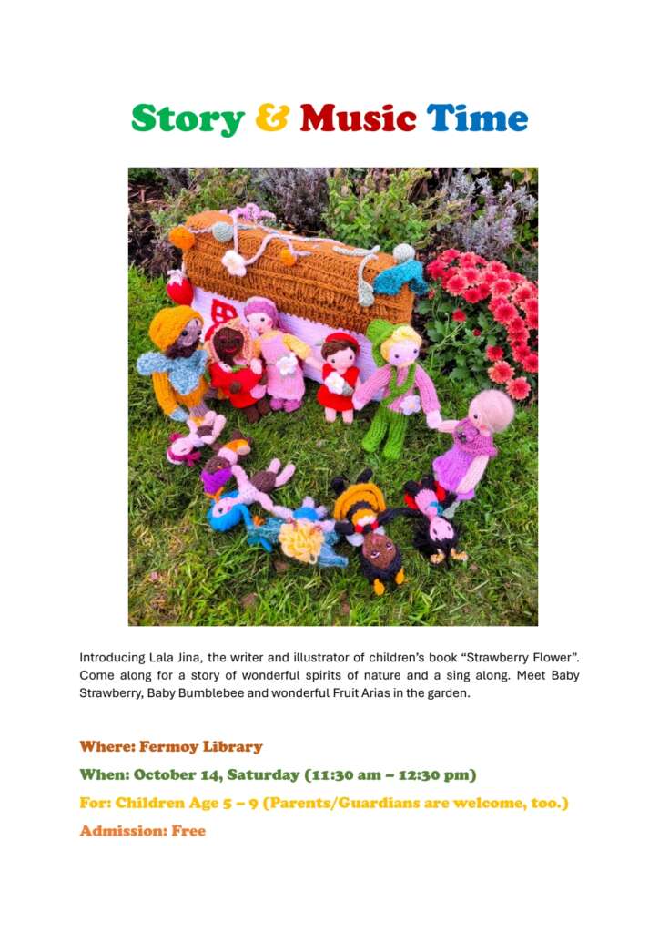 Visit Jina, one of our talented parents, in Fermoy library next month for story time. She will be reading her beautiful book Strawberry Flower.